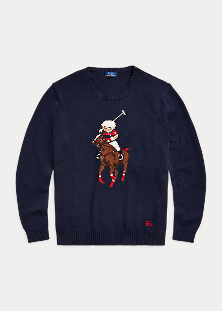 Featuring two Ralph Lauren icons, this sweater depicts the world's best-dressed bear playing polo with our signature Big Pony. At the left hem, our founder's initials are embroidered by hand.