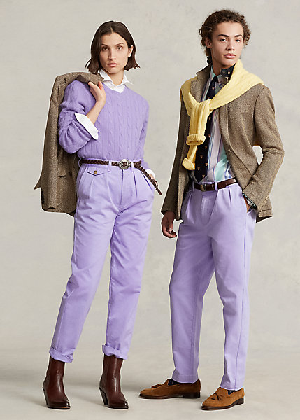 In soft cotton chino, these unisex pants offer a classic Polo look with their relaxed, pleated silhouette.
