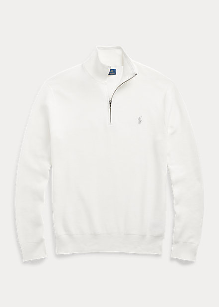 Mesh-Knit Cotton Quarter-Zip Sweater White