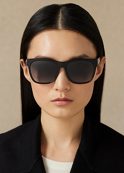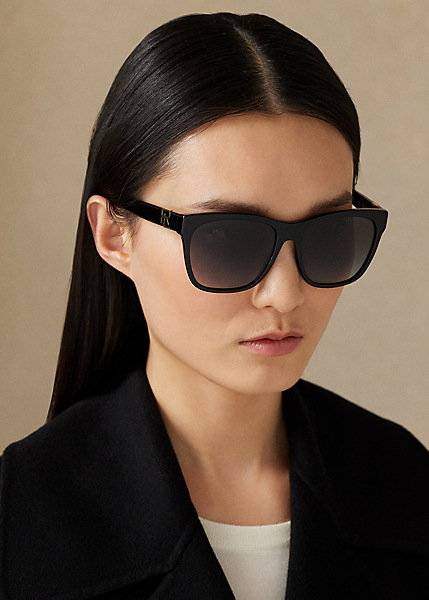 As seen in Ralph Lauren's Spring and Summer 2023 Runway Show, these sunglasses are inspired by our founder's wife and muse, Ricky Lauren. Distinguished by a timeless square-shaped frame, these sunglasses, which are part of Ralph Lauren's RL Stacked collection, are beautifully sculpted with polished acetate, finished with tinted lenses featuring 100% UV protection, and detailed with Ralph Lauren's iconic stacked monogram at each temple.