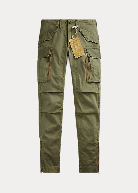 Skinny-fitting cargo pants made from stretch cotton twill. Garment-dyed and washed. Articulated knees for ease of movement. Cargo pockets with an additional side entry.
