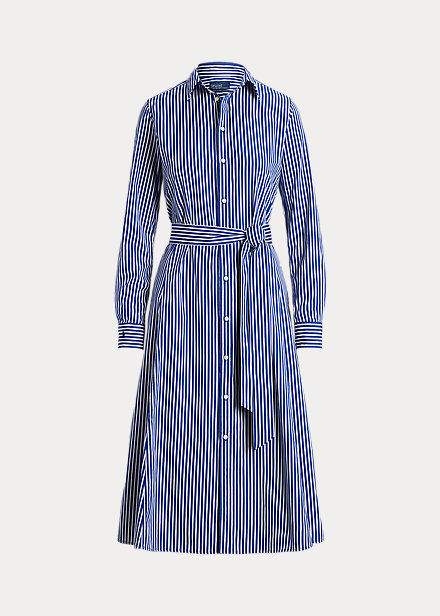 Yarn-dyed vertical stipes enhance the preppy nature of this pure cotton shirtdress, which is crafted for an A-line silhouette and finished with our signature embroidered Pony at the cuff. A removable self-belt allows for versatility in styling and waist definition.