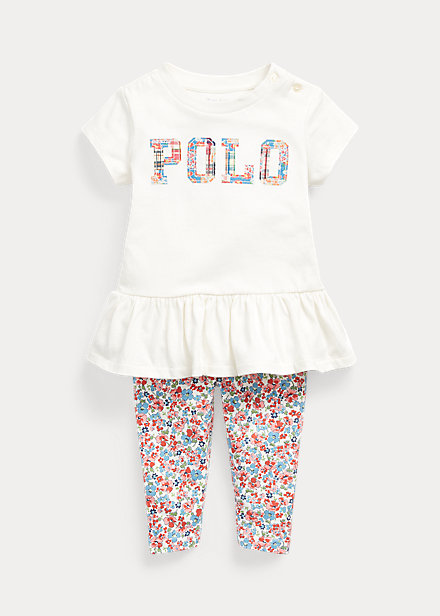 This warm-weather set includes a cotton peplum top that features a patchwork version of our "Polo" logo and stretch jersey leggings in a fresh floral print. Ralph Lauren partners with Better Cottonâ„¢ to improve cotton farming globally. Better Cotton trains farmers to use water efficiently, care for the health of the soil and natural habitats, reduce use of the most harmful chemicals, and implement the principles of decent work.