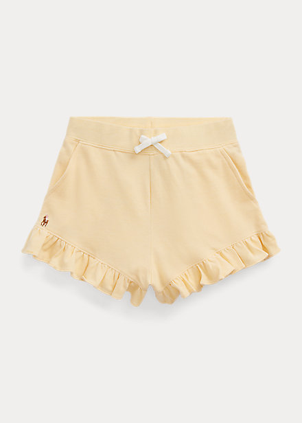 These cotton mesh shorts are washed for added comfort and detailed with cute ruffle trim. Ralph Lauren partners with Better Cottonâ„¢ to improve cotton farming globally. Better Cotton trains farmers to use water efficiently, care for the health of the soil and natural habitats, reduce use of the most harmful chemicals, and implement the principles of decent work.