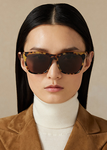As seen in Ralph Lauren's Spring and Summer 2023 Runway Show, these sunglasses are inspired by our founder's wife and muse, Ricky Lauren. Distinguished by a timeless square-shaped frame, these sunglasses, which are part of Ralph Lauren's RL Stacked collection, are beautifully sculpted with polished acetate, finished with tinted lenses featuring 100% UV protection, and detailed with Ralph Lauren's iconic stacked monogram at each temple.