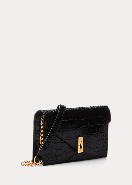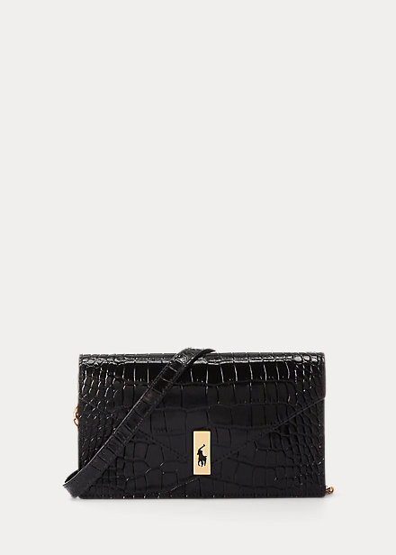 Polo ID Croc-Embossed Chain Wallet & Bag Black