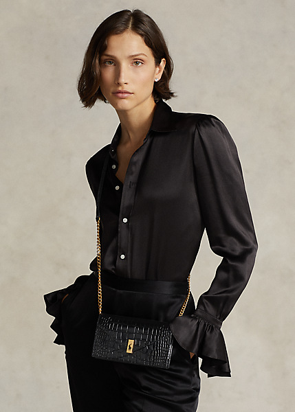 Part of the Polo ID collection, which is inspired by a sense of adventure, romance, and optimism, this croc-embossed Italian calfskin wallet honors the heritage of traditional craftsmanship by merging the structural elegance of an envelope silhouette with a highly versatile chain-link-and-leather strap. It is finished with a magnetic teardrop slide lock showcasing the silhouette of our signature Pony cut out on gold-tone brass hardware reminiscent of vintage ID bracelets.