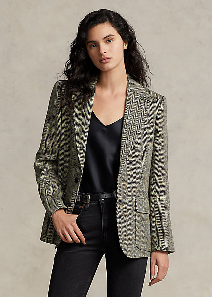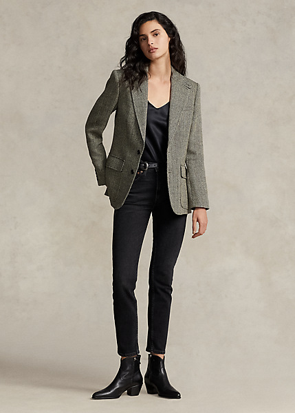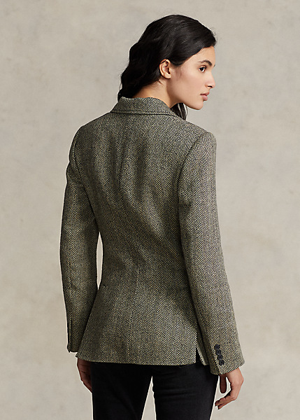 Featuring a timeless herringbone pattern, this blazer is masterfully crafted in Portugal with a luxe blend of Italian-spun yarn. A sophisticated staple, it's enhanced with traditional tailoring details, including waist darts and princess seams.